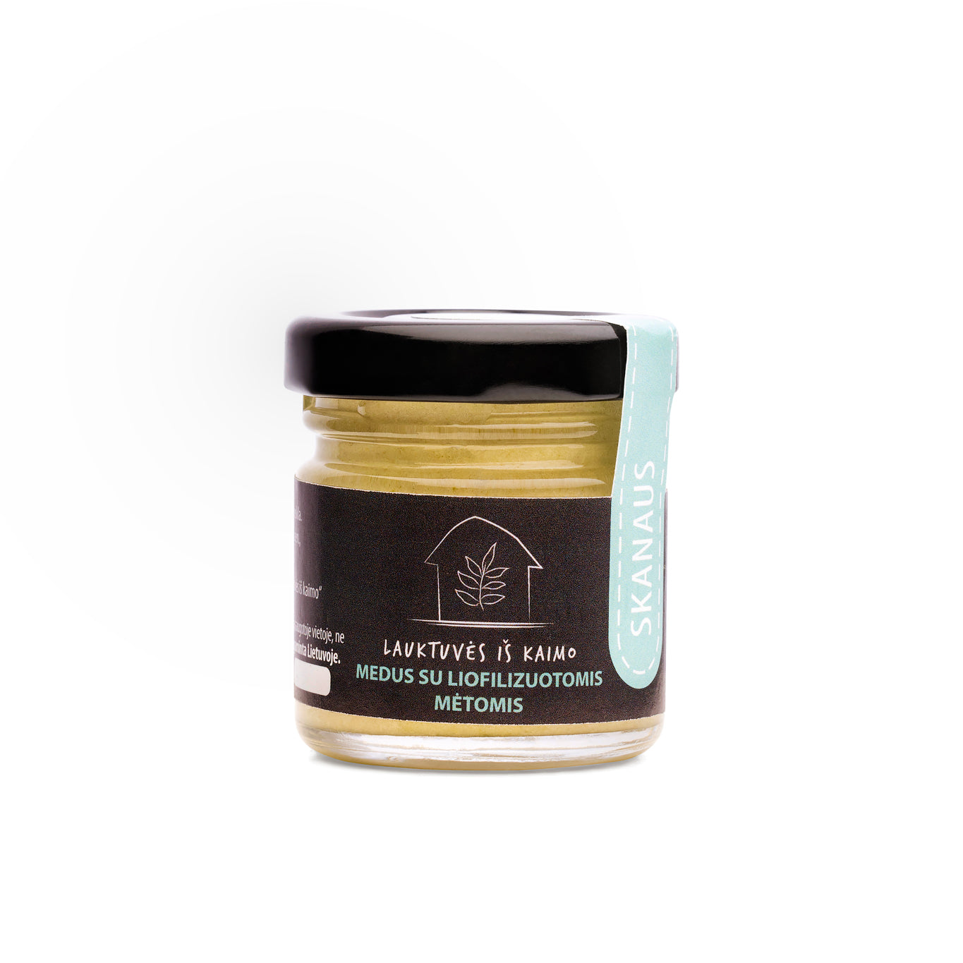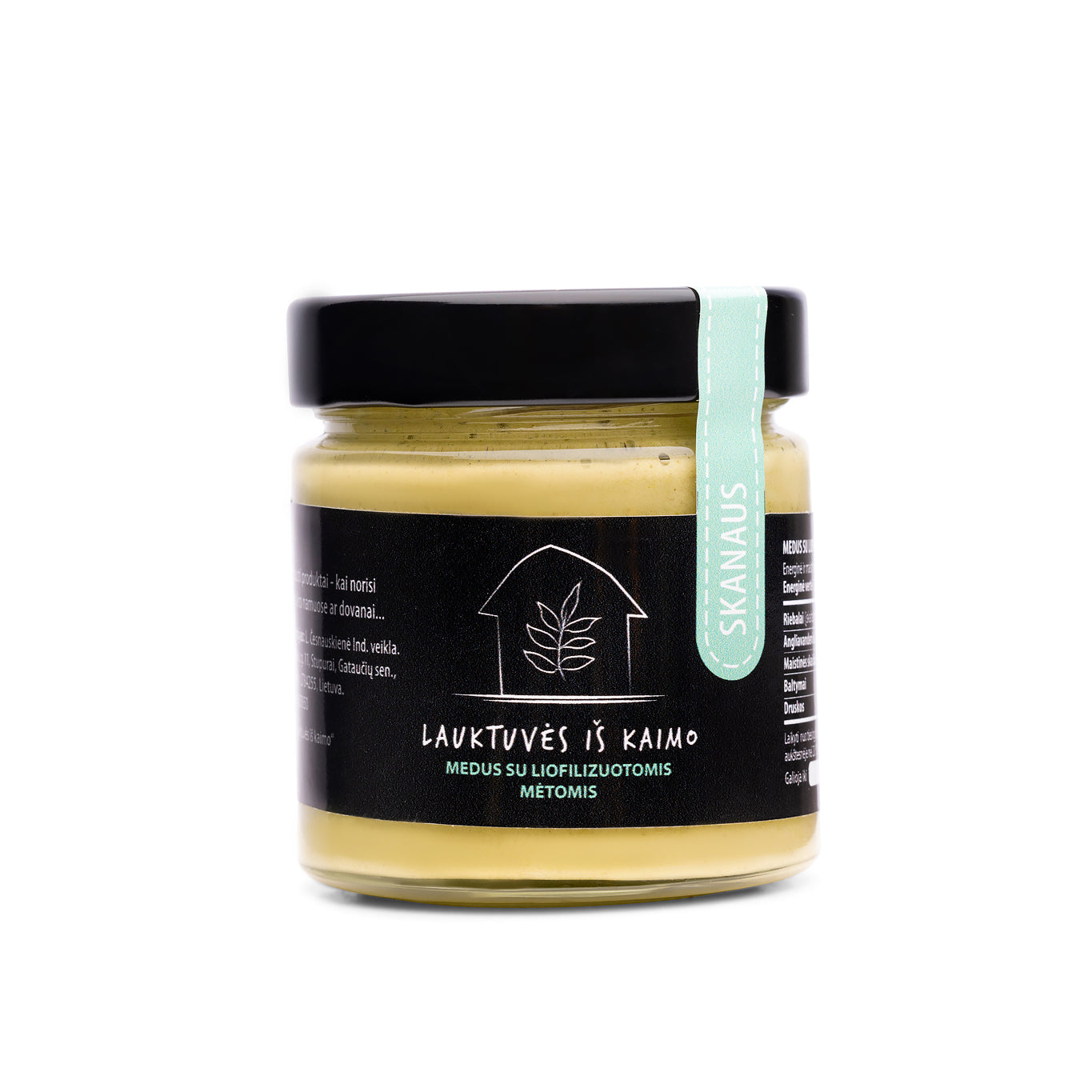 Sudėtis: 95 proc. medus, 5 proc. liofilizuotos mėtos. Tinka pagardinti rytinę košę, blynus, sūrį, kepinius ar saldėsis prie kavos ar arbatos.