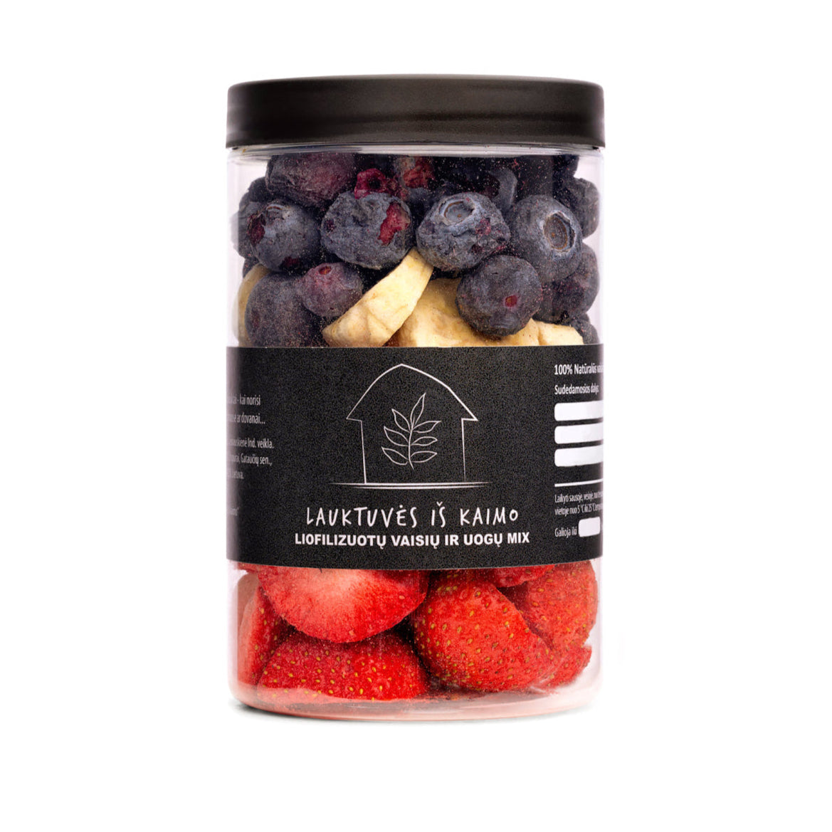 Sudėtis: braškės, bananai, šilauogės.